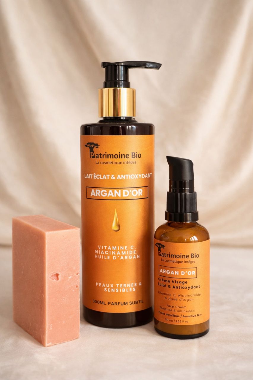 Une peau lumineuse est avant tout une peau sereine et hydratée. Loin des soins agressifs qui fragilisent l’épiderme, la crème visage Argan d’or mise sur l’apaisement et l’hydratation grâce au panthénol, à l’extrait de réglisse, la niacinamide et l’acide hyaluronique. En désaltérant les tissus et en calmant les micro-irritations, ce lait révèle un éclat naturel et durable qui vient d’une peau en pleine santé, et non d’un décapage superficiel.